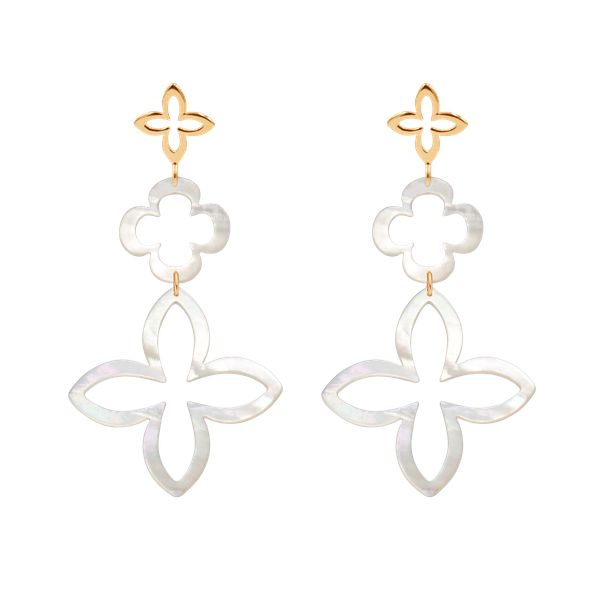 Kolczyki modułowe z masy perłowej Lily z pozłacaną lilijką