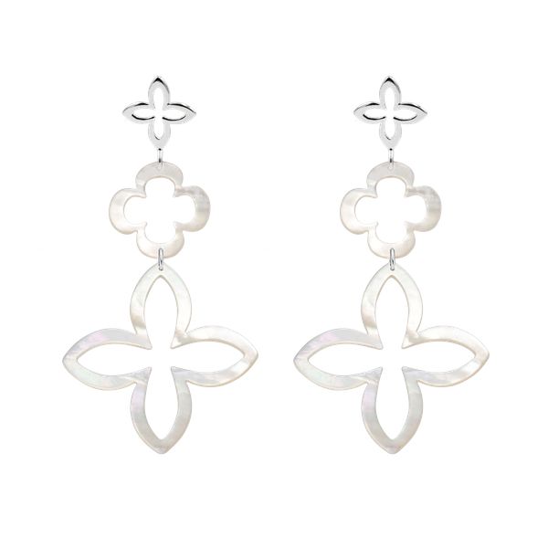 Kolczyki modułowe z masy perłowej Lily ze srebrną lilijką