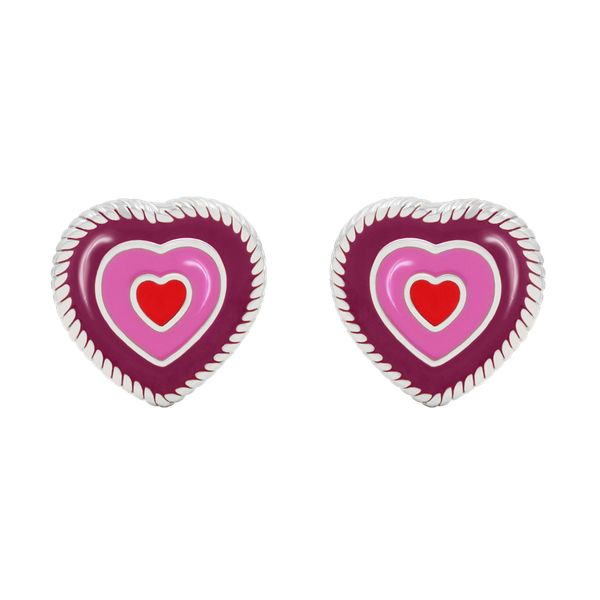 Kolczyki serca z fioletową i różową emalią, 9 mm, posrebrzane