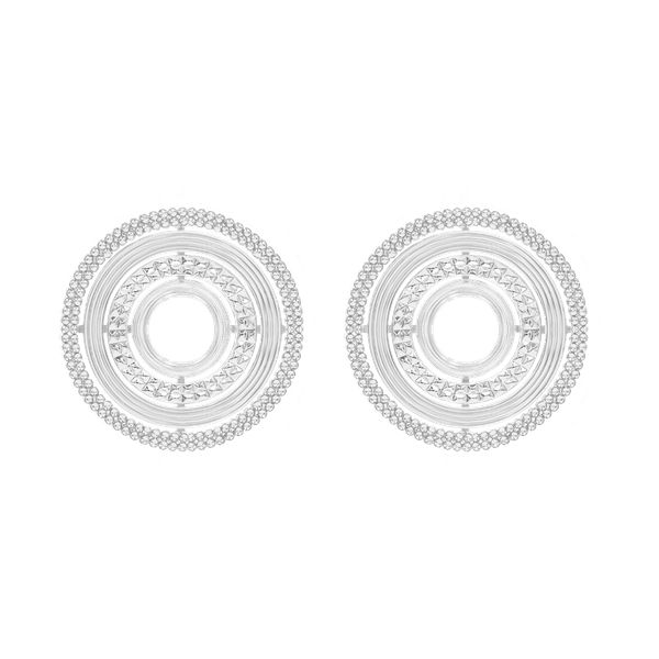 Kolczyki Etno na sztyfcie posrebrzane. ETNO to kolekcja inspirowana podróżami. To talizmany składające się z czterech zdobionych okręgów, symbolizujące energię oraz moc jaką niesie poznawanie świata i kultur. Wielkość kolczyków: 3,1 cm Kolczyki wykonane są z mosiądzu pokrytego srebrem próby 925.