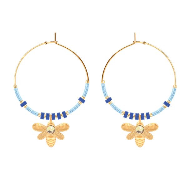 Kolczyki koła z niebieskimi japońskimi koralikami Miyuki z zawieszkami Honey