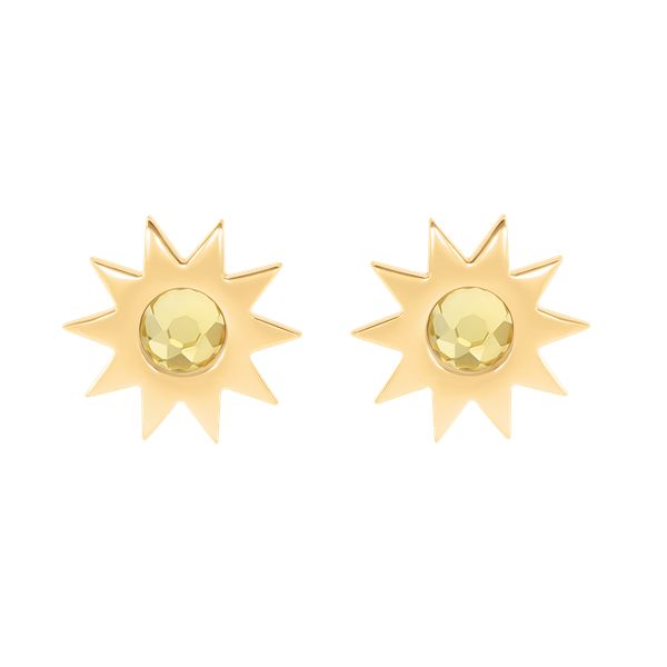 Kolczyki w kształcie gwiazdek z cytrynem, pozłacane. Gwiazdka jest symbolem szczęścia, sukcesu i doskonałości. Cytryn uważany jest za kamień optymizmu, radości i szczęścia. Wielkość kolczyków: 1 cm Kolczyki wykonane są ze stali szlachetnej pokrytej 18-karatowym złotem.