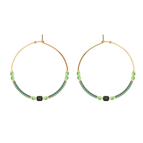 Kolczyki koła z zielonymi japońskimi koralikami Miyuki