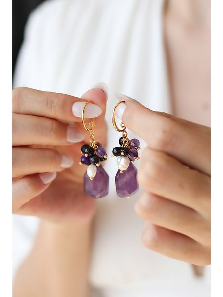 – materiał: mosiądz- powłoka: złoto- zapięcie: bigiel- rodzaj kamienia: ametyst- kolor kamienia: fioletowy- rodzaj perły: syntetyczna perła ozdobnaWskazówka: Zdjęcie produktu w powiększeniu.