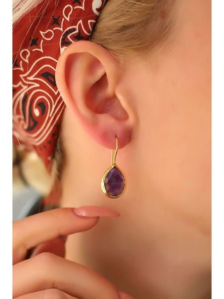 – materiał: mosiądz- powłoka: złoto- zapięcie: bigiel- rodzaj kamienia: ametyst- kolor kamienia: fioletowyWskazówka: Zdjęcie produktu w powiększeniu.