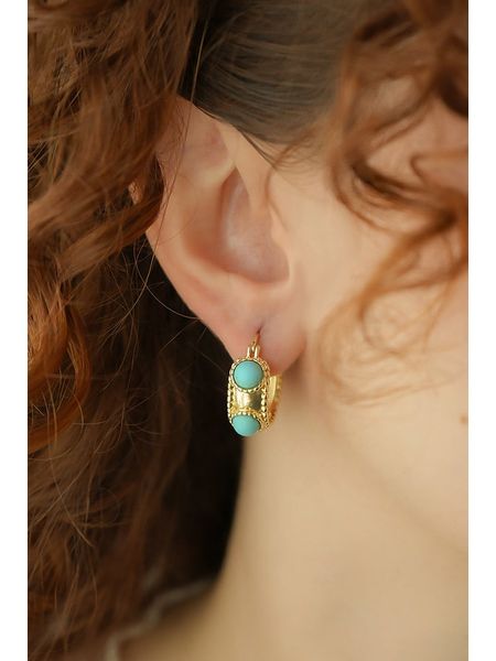 Pierres delicates Pozłacane kolczyki-kreole z turkusami rozmiar: onesize