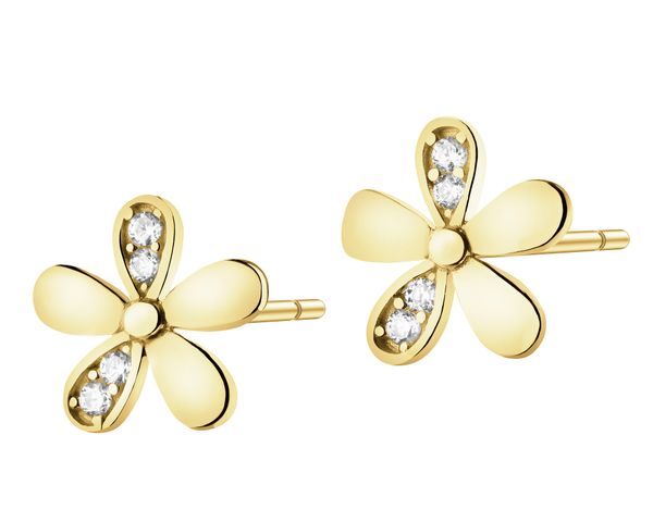 Złote kolczyki z cyrkoniami – kwiaty – AP544-1597. Żółte złoto