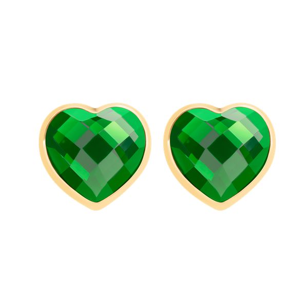 Kolczyki Mini Icons w kształcie serca z zielonym szkłem kryształowym, pozłacane. Wielkość kolczyków: 1 cm Kolczyki wykonane są ze stali szlachetnej pokrytej 18-karatowym złotem.