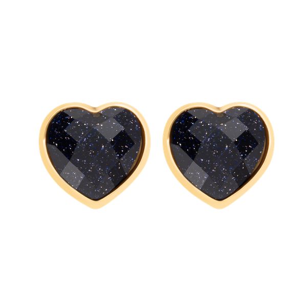 Kolczyki Mini Icons w kształcie serca z czarnym brokatowym szkłem kryształowym, pozłacane. Wielkość kolczyków: 1 cm Kolczyki wykonane są ze stali szlachetnej pokrytej 18-karatowym złotem.