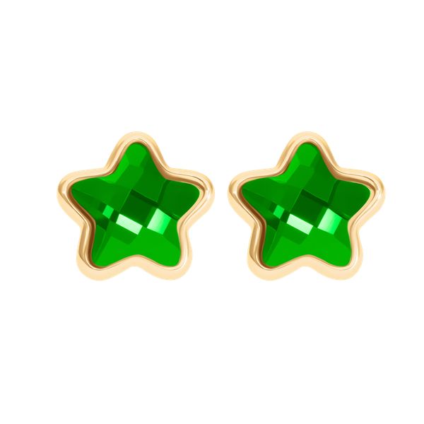 Kolczyki Mini Icons w kształcie gwiazdki z zielonym szkłem kryształowym, pozłacane. Wielkość kolczyków: 1 cm Kolczyki wykonane są ze stali szlachetnej pokrytej 18-karatowym złotem.