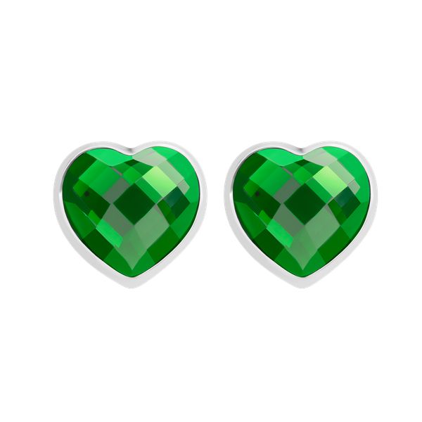Kolczyki Mini Icons w kształcie serca z zielonym szkłem kryształowym, posrebrzane. Wielkość kolczyków: 1 cm Kolczyki wykonane są ze stali szlachetnej pokrytej srebrem próby 925.