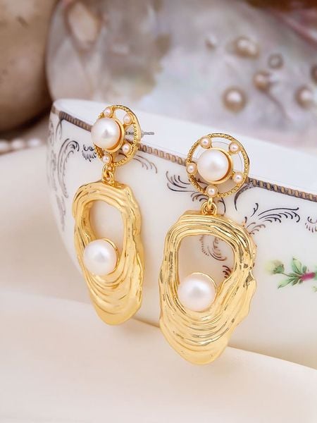 – materiał 1: mosiądz- powłoka: złoto- materiał 2: perły- zapięcie: wtykWskazówka: Zdjęcie produktu w powiększeniu.