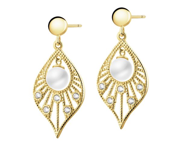 Złote kolczyki z perłami i cyrkoniami – AP544-0546. Żółte złoto