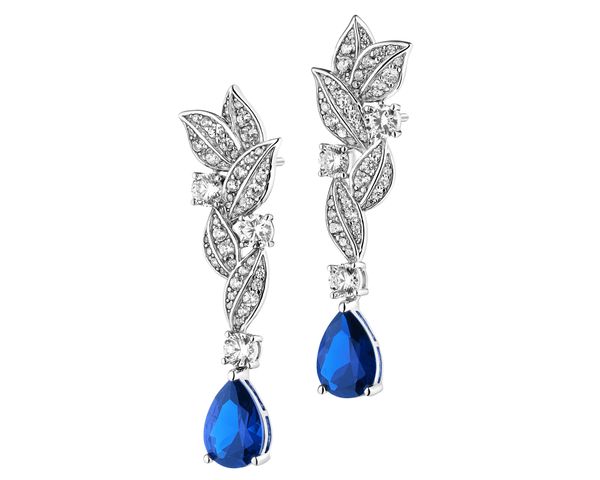 Kolczyki srebrne z cyrkoniami – liście – AP542-4493. Srebro rodowane