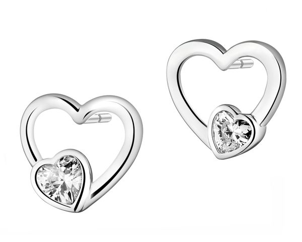 Kolczyki srebrne z cyrkoniami – serca – AP542-4371. Srebro rodowane
