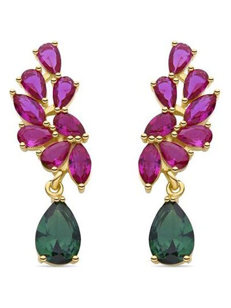 – materiał: srebro Sterling próby 925- powłoka: w kolorze złota- zapięcie: motylkowe- rodzaj kamienia: cyrkonia- kolor kamienia: różowy, zielonyWskazówka: Zdjęcie produktu w powiększeniu.