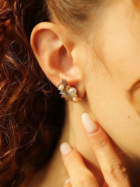 Pierres delicates Pozłacane kolczyki-wkrętki z perłami rozmiar: onesize