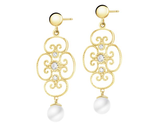 Złote kolczyki z perłami i cyrkoniami – AP544-4918. Żółte złoto