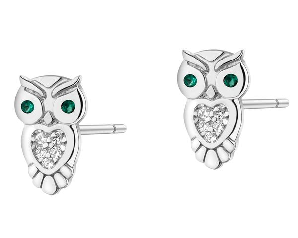 Kolczyki srebrne z cyrkoniami – sowy – AP543-1031. Srebro rodowane