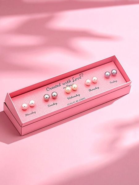 W zestawie:- 5 różnych par kolczyków- materiał: mosiądz- powłoka: w kolorze złota- zapięcie: motylkowe- rodzaj perły: syntetyczna perła ozdobna- kolor perły: biały, szary, kremowy, jasnoróżowy i fioletowy- opakowanie: pudełko prezentoweWskazówka: Zdjęcie produktu w powiększeniu.