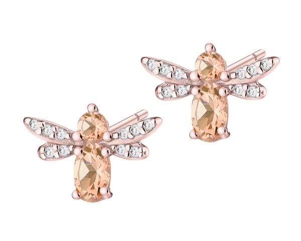 Kolczyki srebrne z cyrkoniami – pszczółki – AP540-0931. Srebro pozłacane, różowe