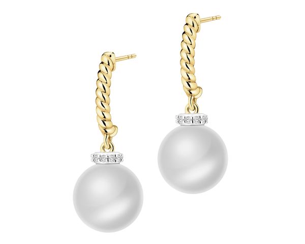 Kolczyki z żółtego złota z diamentami i perłami – próba 585 – 240.182. Żółte złoto rodowane