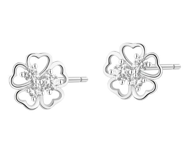 Kolczyki srebrne z cyrkoniami – koniczyna – AP543-1929. Srebro rodowane