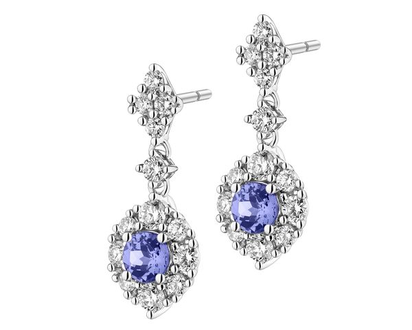 Kolczyki z białego z złota brylantami i tanzanitami – próba 585