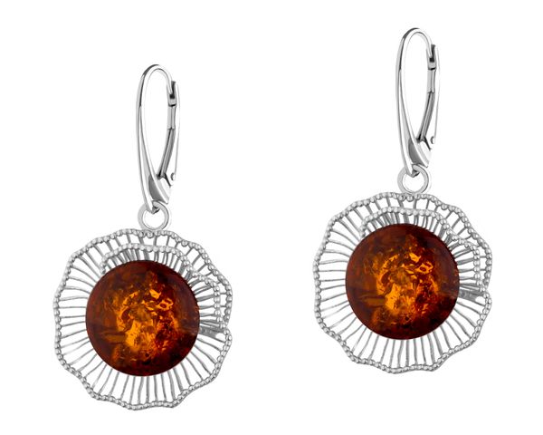 Kolczyki srebrne z bursztynem – AP544-8031. Srebro rodowane