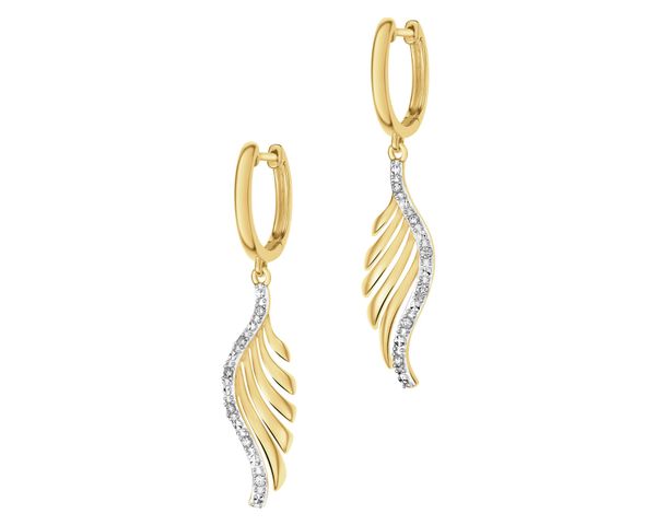 Kolczyki z żółtego złota z brylantami – piórka – 0,08 ct – próba 585