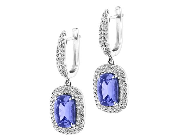 Kolczyki z białego złota z brylantami i tanzanitami – próba 585