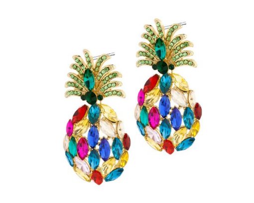 Kolczyki z mosiądzu pozłacane z cyrkoniami i szkłem szlifowanym – ananasy