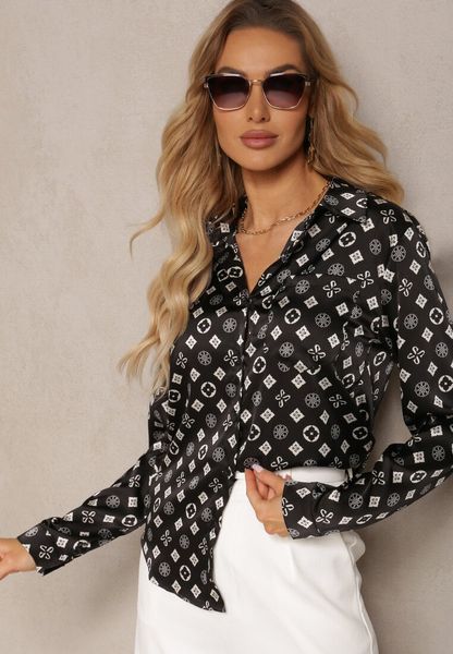 Czarna Klasyczna Koszula w Geometryczny Print Aletiza