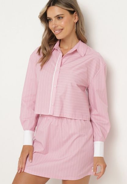 Różowy Komplet Koszula Zapinana na Guziki Spódnica z Gumką w Pasie Tiamalinda