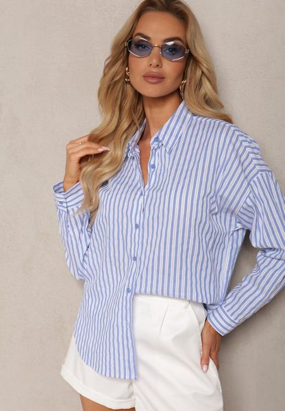 Jasnoniebieska Koszula z Bawełny w Pionowe Pasy Zapinana na Guziki Viklena
