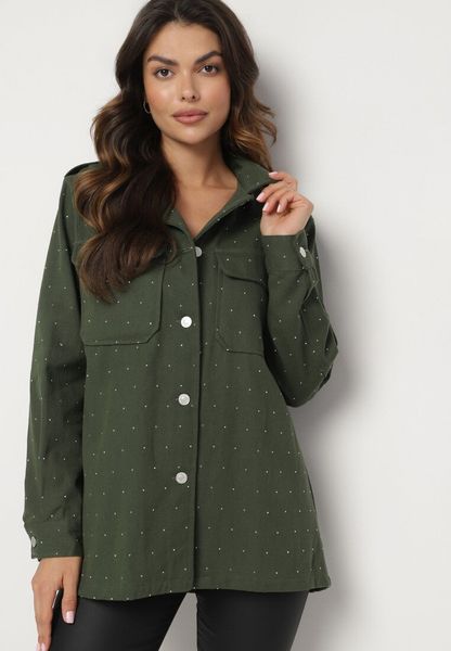 Zielona Bawełniana Koszula Ozdobiona Cyrkoniami na Guziki Nerelise