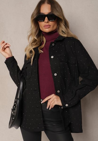Czarna Koszula z Bawełny na Guziki z Cyrkoniami Nerellia