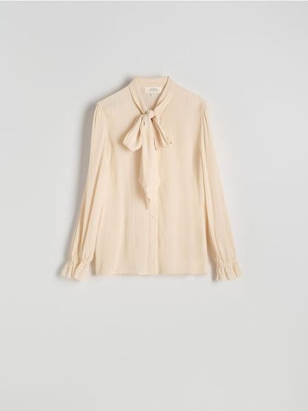Koszula z wiązaniem przy dekolcie – złamana biel