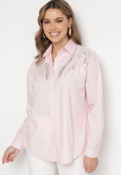 Różowa Koszula z Bawełny Ozdobiona Cekinami Nalaniriel