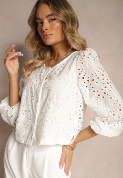 Biała Bawełniana Koszula Ozdobiona Haftem Fonliria