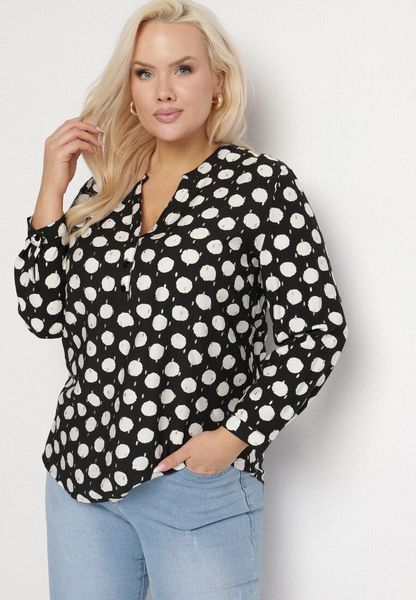 Czarna Koszula z Wiskozą w Kropki z Regulowanymi Rękawami Zerriana