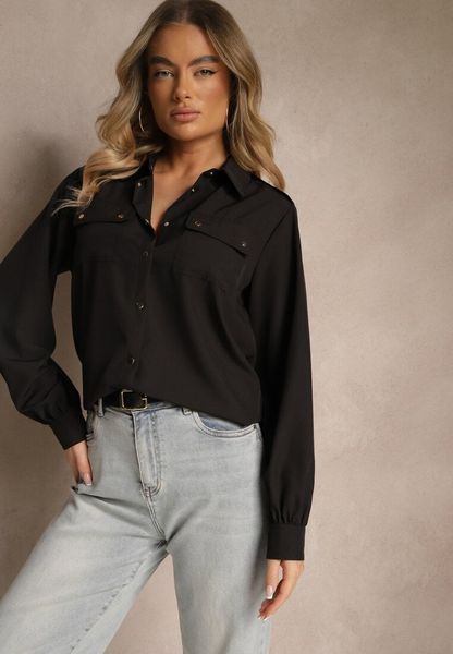 Czarna Koszula z Wiskozą Ozdobiona Pagonami Isenira