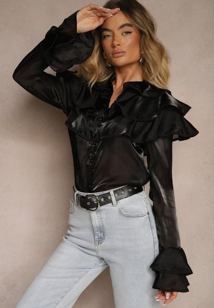 Czarna Koszula Ozdobiona Falbankami Ridina