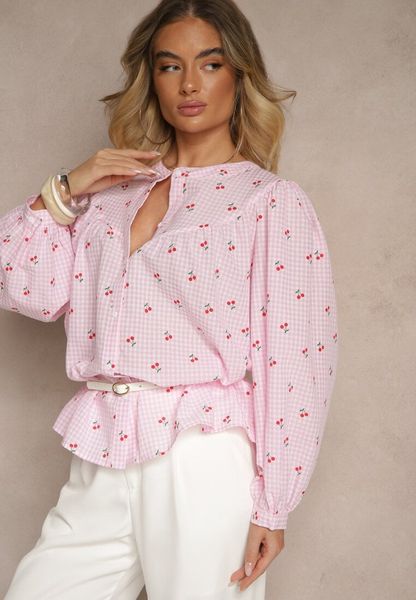 Różowa Koszula Bawełniana z Wisienkami w Kratę Haladriela