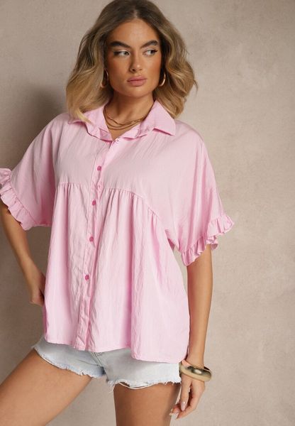 Różowa Koszula z Wiskozą Ozdobiona Falbankami Oleldi