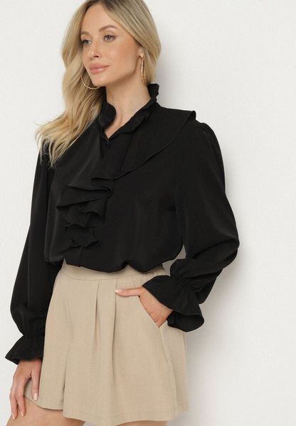 Czarna Koszula Ozdobiona Falbankami Jenisela