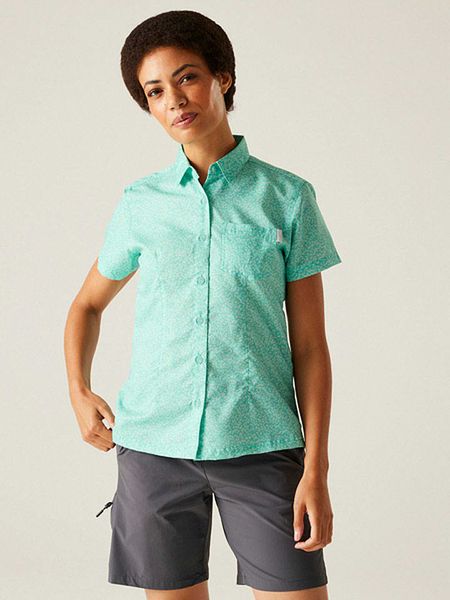 – szybkoschnący materiał- ochrona UV: 50+- kołnierz: kent- kieszenie piersiowe: 1- krój: prosty- wzór: kwiatowy