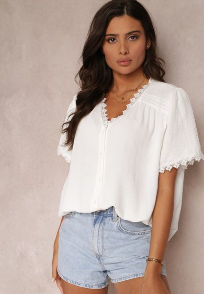 Biała Koszula Zapinana na Guziki z Ozdobną Koronką Willona
