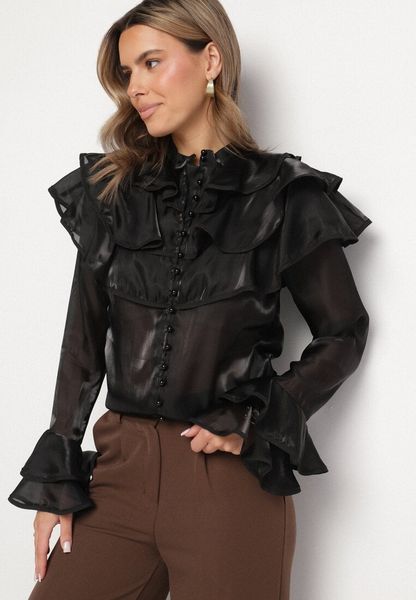 Czarna Koszula z Ozdobnymi Falbankami Edianessea