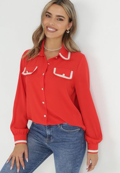 Czerwona Koszula z Biżuteryjnymi Guzikami i Eleganckimi Lamówkami Athehir